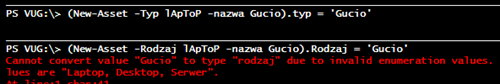 Zarówno parametr ‘Typ’ jak i parametr ‘Rodzaj’ mogą mieć tylko założone przez nas wartości. Niestety, ValidateSet nie dba o wielkość liter… Skutek?