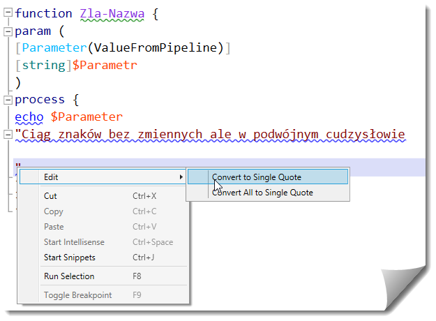 ISESteroids to przede wszystkim dodatek rozbudowujący możliwości edytora. Otwierając swoje starsze skrypty momentalnie wyłapałem mniej lub bardziej poważne “usterki”. Samo ISE wyłapie jedynie błędy składni. ISESteroids dodatkowo zwróci nam uwagę na: