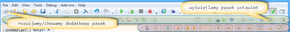 Już one wystarczą by zauważyć, jak dużym “dopalaczem” nasze “sterydy” są. Jeśli brakuje nam kontrolek, możemy od razu włączyć “secondary toolbar” (na rysunku: zielony) – zyskamy kilka dodatkowych, w tym tę, która pozwala włączyć ostatni zestaw narzędzi “settings toolbar” (na rysunku: różowy). Ten ostatni skonfigurowany jest by automatycznie się ukrywać, gdy użytkownik przestaje z niego korzystać.