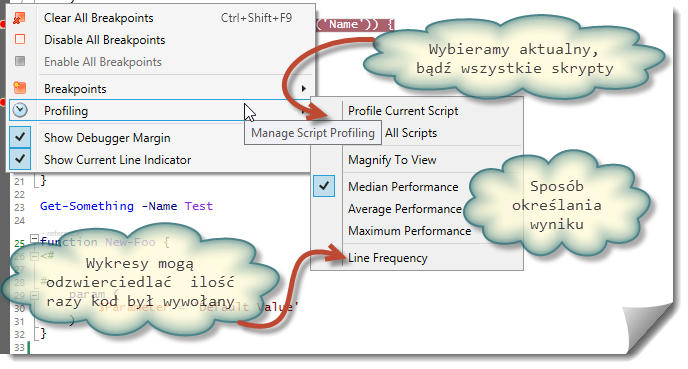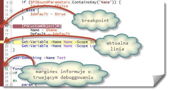 Wypada wspomnieć o tym, że jest to jedynie wyciągnięcie na powierzchnię funkcjonalności, do której dostęp mamy z poziomu konsoli. Również dodane w ten sposób breakpointy możemy w prosty sposób wyświetlić/ włączyć/ wyłączyć/ usunąć, korzystając przy tym poleceń *-PSBreakpoint: