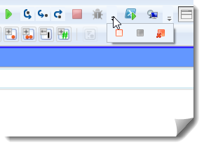 Mniej istotna, choć bardzo ułatwiająca sam proces debugowania, jest rozbudowana narzędziówka, która dodatkowo w trakcie zatrzymania skryptu na jakimś breakpoincie sygnalizuje ten fakt “mrugającym” przyciskiem “stop”. Mamy też przyciski do ustawienia breakpointów i poszczególnych operacji dostępnych w trakcie “odrobaczania” (czyli trzech rodzajów “kroków”).