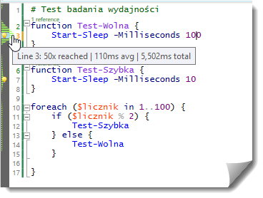 Stwierdzenie “skrypt wolno działa” jest na ogół równie pomocne dla osoby mającej wprowadzić w nim poprawki, mające na celu poprawę wydajności, jak sławetne “autobus się zepsuł”. Bywa tak, że mamy pewne przeczucia: która część pochłania najwięcej czasu. Ale czasem przypuszczenia bywają błędne, poprawiamy pracowicie jakiś fragment kodu i finalnie uzyskujemy efekt żaden, lub w skali działania całego skryptu – niezauważalny. W takich sytuacjach przydaje się narzędzie, które potrafi określić dokładnie, które elementy skryptu działają szybciej, a których uruchomienie trwa dłużej. ISESteroids oferowało ogólną informację o tym ile zajęła dana czynność już wcześniej, ale w ostatniej wersji możemy już dokładnie prześledzić szybkość działania poszczególnych fragmentów naszego skryptu przy pomocy wbudowanego narzędzia do analizy szybkości działania kodu. Uruchamiamy go również z poziomu marginesu do debuggowania. Możemy przy tym zdecydować, czy chcemy go uruchamiać dla wszystkich skryptów, czy jedynie dla aktualnie analizowanego: