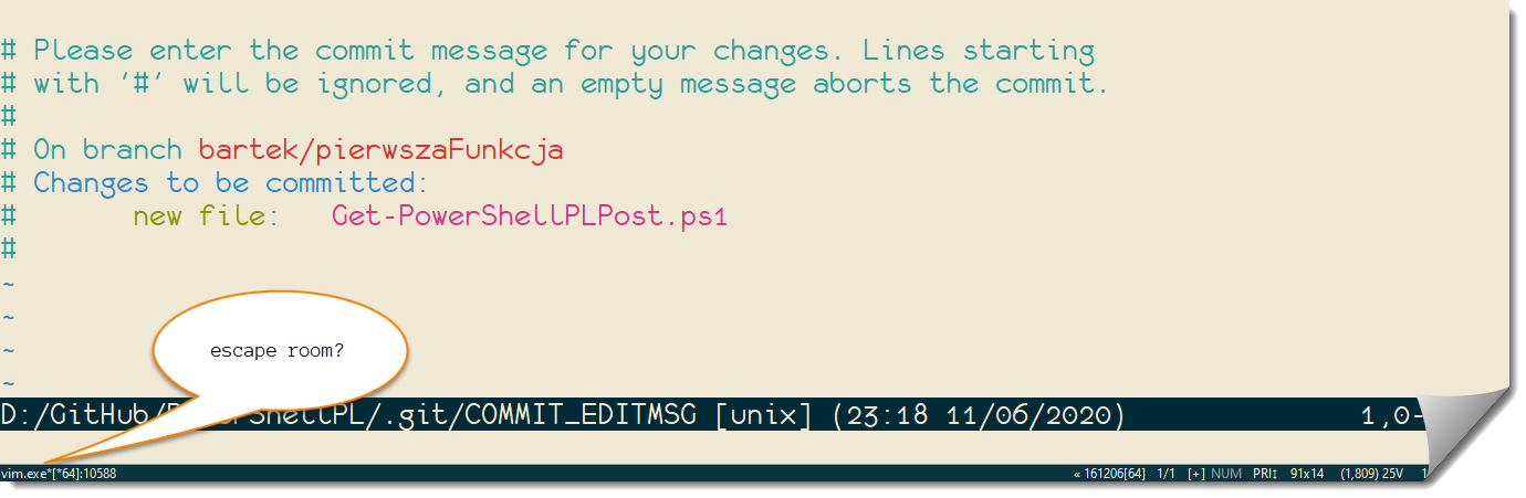 Mamy więc dwie możliwości: opanować podstawy vima, skonfigurowanie innego edytora bądź zadbanie o opis zmian w linii poleceń.