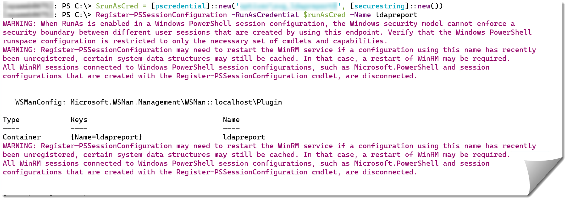 | Register-PSSessionConfiguration -RunAsCredential $runAsCred -Name końcówkaGmsa |