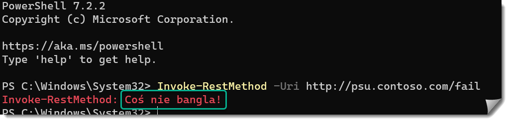 Oczywiście, nie zawsze mamy komfort “przesiadki” na nowszą wersję – co więc, gdy jesteśmy skazani na pracę z wersją starszą? W naszej firmie postanowiliśmy “oryginalne” Invoke-RestMethod opakować i dodać kilka linijek, które zatroszczą się o prawidłową obsługę błędów przekazywanych w ten sposób:
